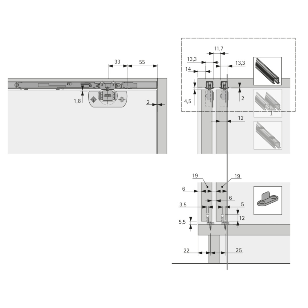 Толщина верхней панели мин. 16 мм