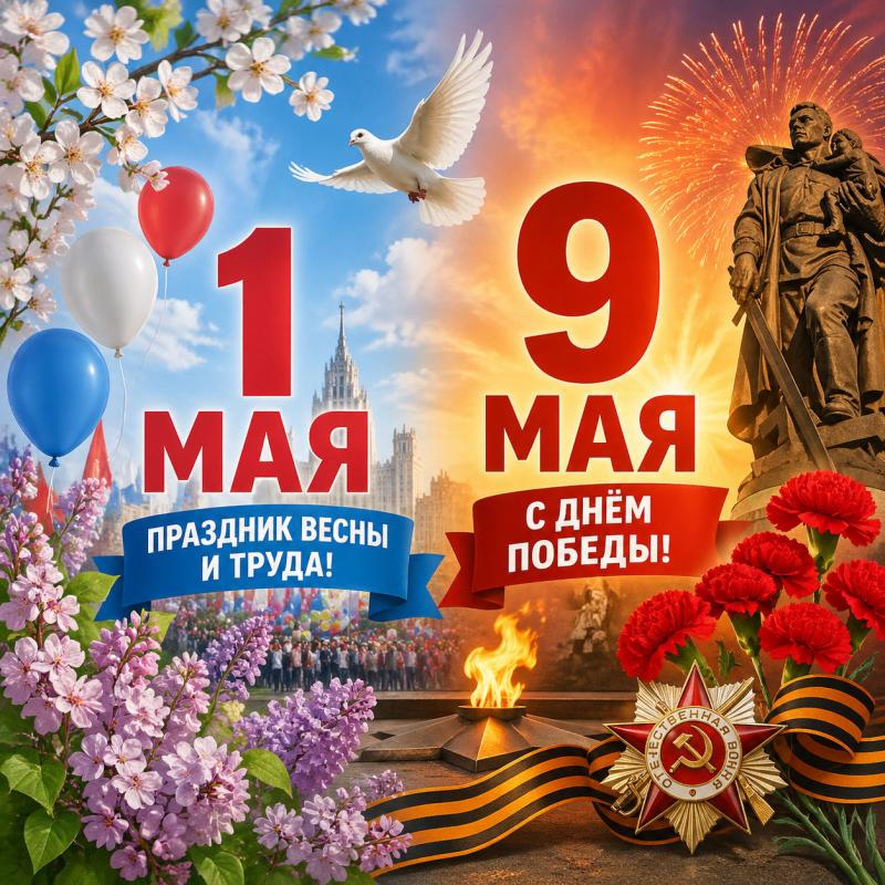 - С 01.05.2026 по 03.05.2026 — праздничные и выходные дни (День Весны и Труда).